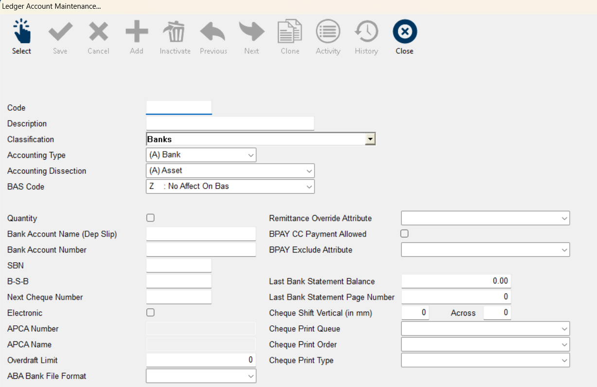 If your new bank account has a zero balance at the beginning of the current month, it is possible to add it in Stockyard in a few short steps. For bank accounts that already have a balance for the current month, please contact Outcross Systems for assistance in adding this account correctly.