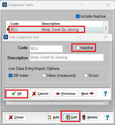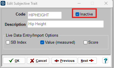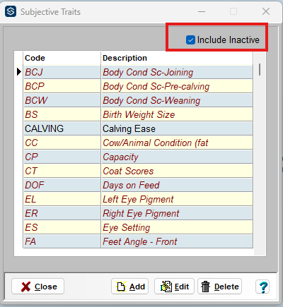 - Tick Include Inactive. All inactivate traits will now be list in red and italic lettering