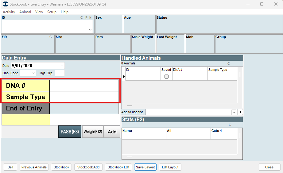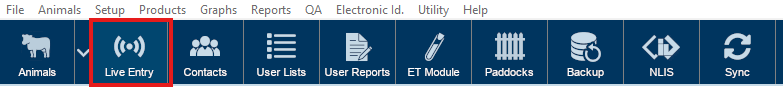 - Note: The Sample Type will be remembered by Live Entry once the first animal is saved