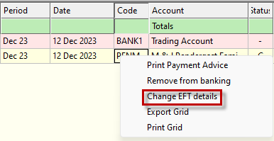 Payment details can be amended once the aba file has been created. Any changes made in the aba file will only be found in this aba file. To update the details: