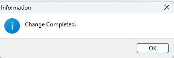 - select OK to 'Change Completed.'