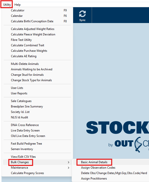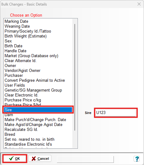 - Select Utilities > Bulk Changes > Basic Animal Details