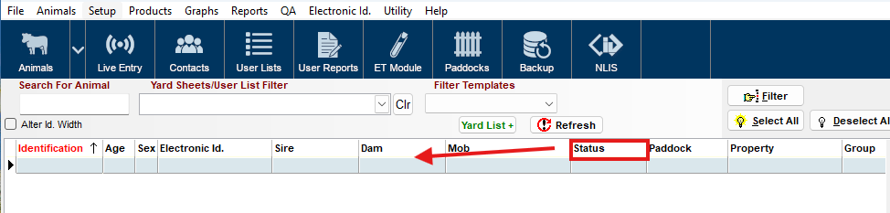 Select Animals on the Main Animal Screen