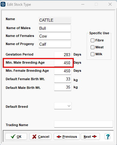 If for example, you have used a weaner bull in joinings, it is possible that you need to lower the minimum breeding age so that you can use this animal as a sire.