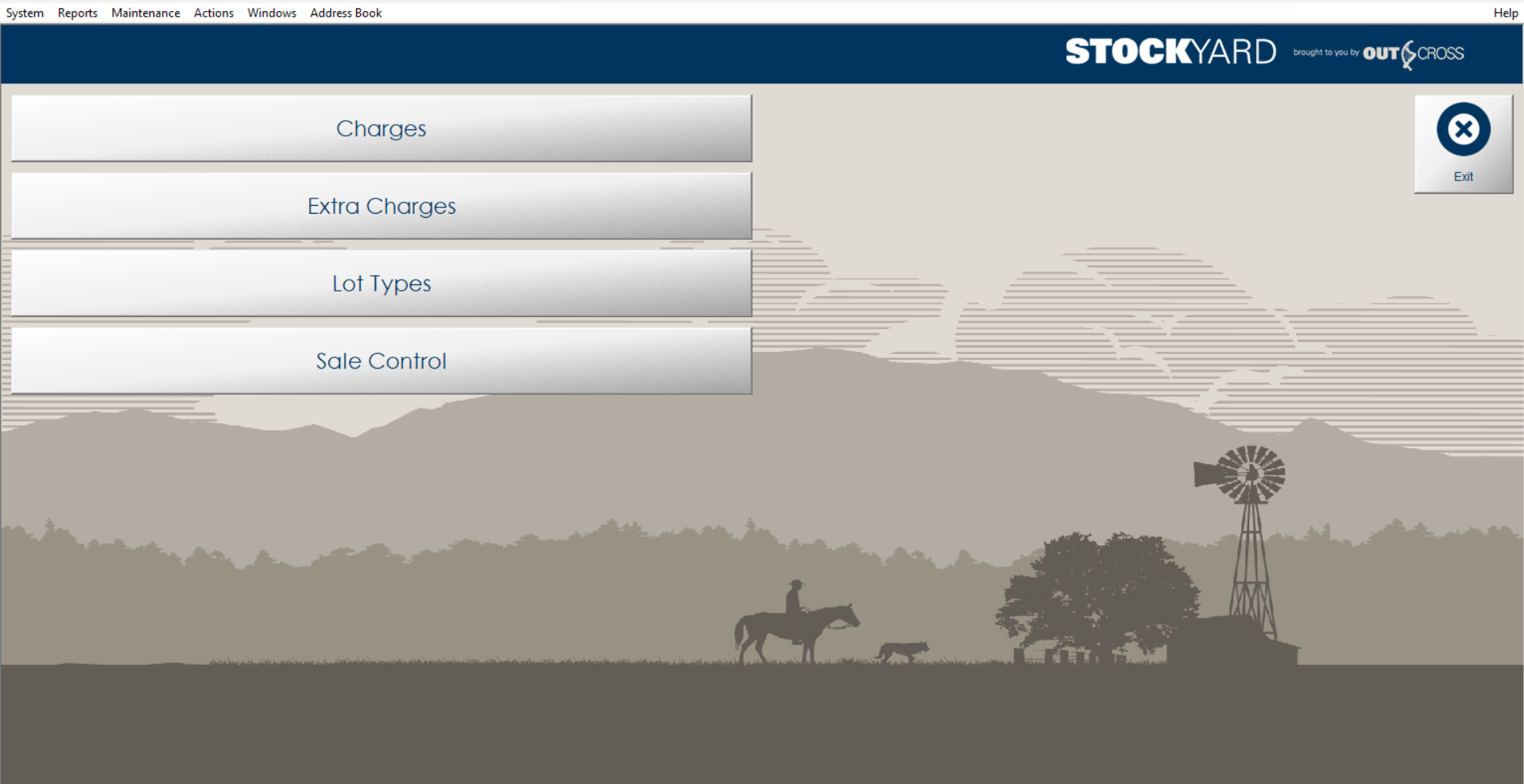 The home screen buttons can be modified but generally show the shortcuts to viewing or maintaining a sale. New Charges, Extra Charges, Lot Types must be created before being added to a sale.