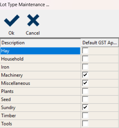 Lot Types will also need to be added so they are available when entering the details for the lots.