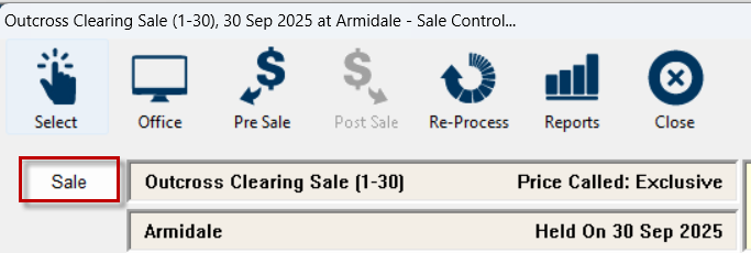 If changes are needed to be made once a sale has been closed, the same button displaces as Update Sale to reopen the sale then Re-process to close it again.