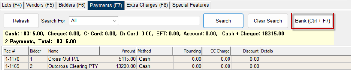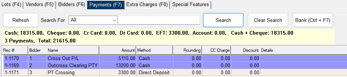 To collect a payment, click on the relevant bidder and the payment screen will generate.