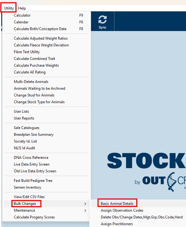 - Go to Utility > Bulk Changes > Basic Animal Details