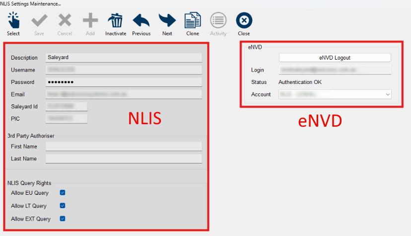 - NLIS account: Used for NLIS transfers/inquiries (username/password).