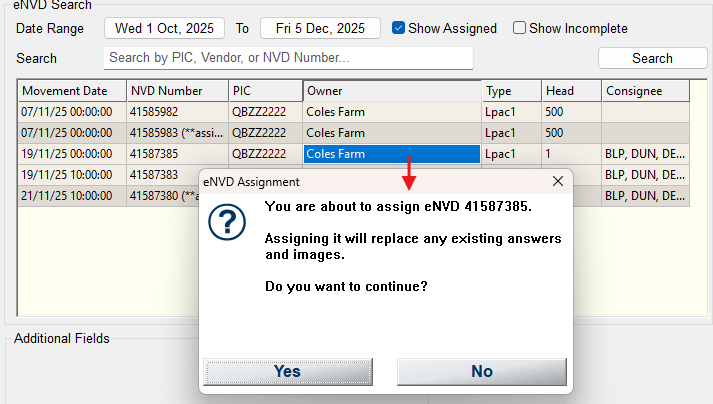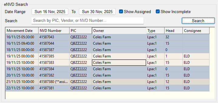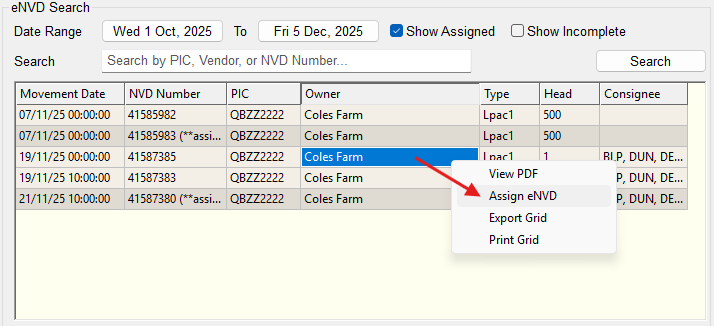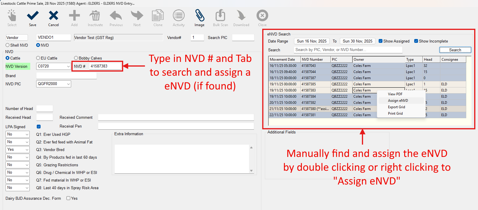 eNVD integration allows authorised users to securely retrieve digital NVD consignments from myMLA and assign them directly to NVDs in Stockyard.