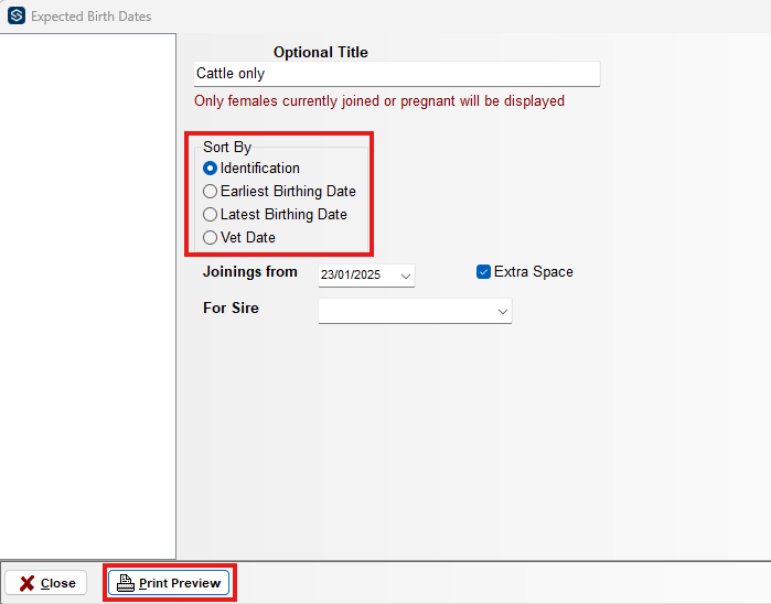 Select how you would like to animals to be sorted when they are presented in a list after printing