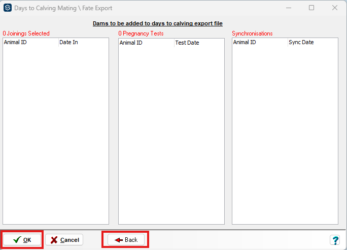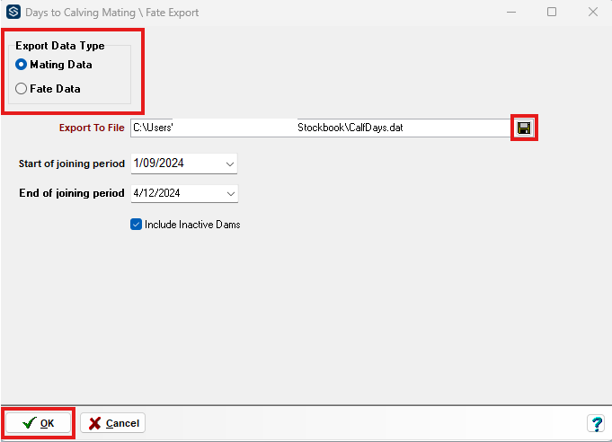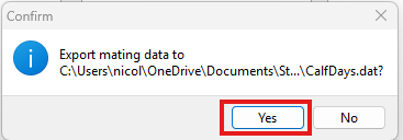 - Click on File > Export Options > Days to Calving Mating \ Fate Export menu option.