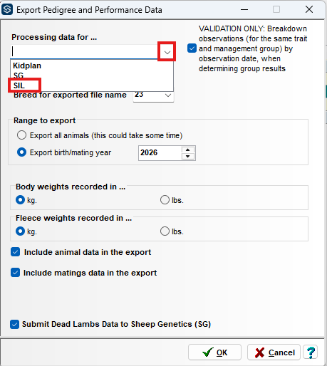 Exporting performance and pedigree data to Sheep Improvement Ltd (SIL) (New Zealand)