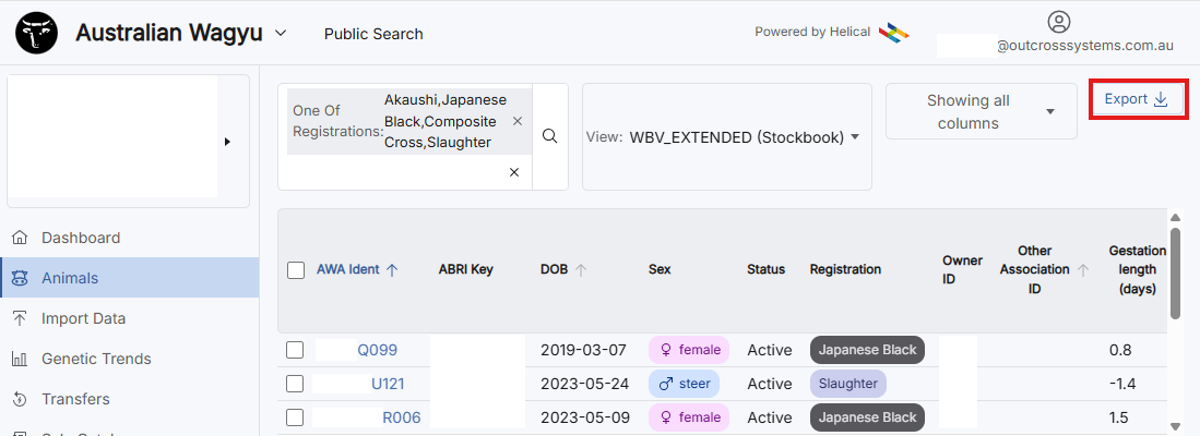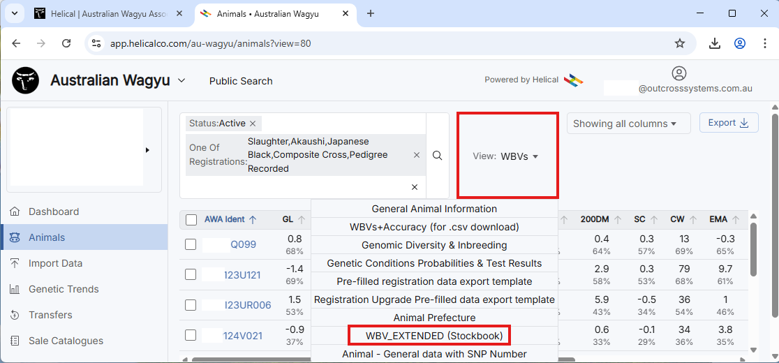 Exporting WBVs (Wagyu Breeding Values) from Helical