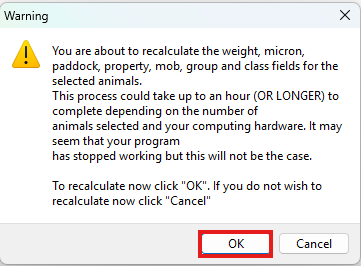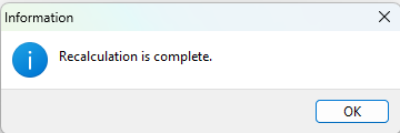 - Click Ok the message 'recalculation is complete'.