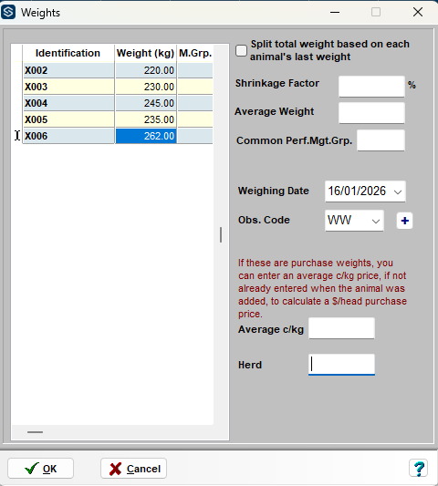 The weights showing on the main animal screen are different to what is recorded for the animal(s) in the weights table. Go to Utility > Maintenance > Rebuild last weight/micron data. Click OK to the following message Click Ok the message ...
