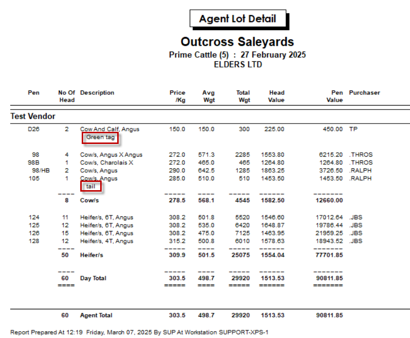 Internal lot comments can be used when receiving animals to note anything unusual like a missing tag or wellbeing.