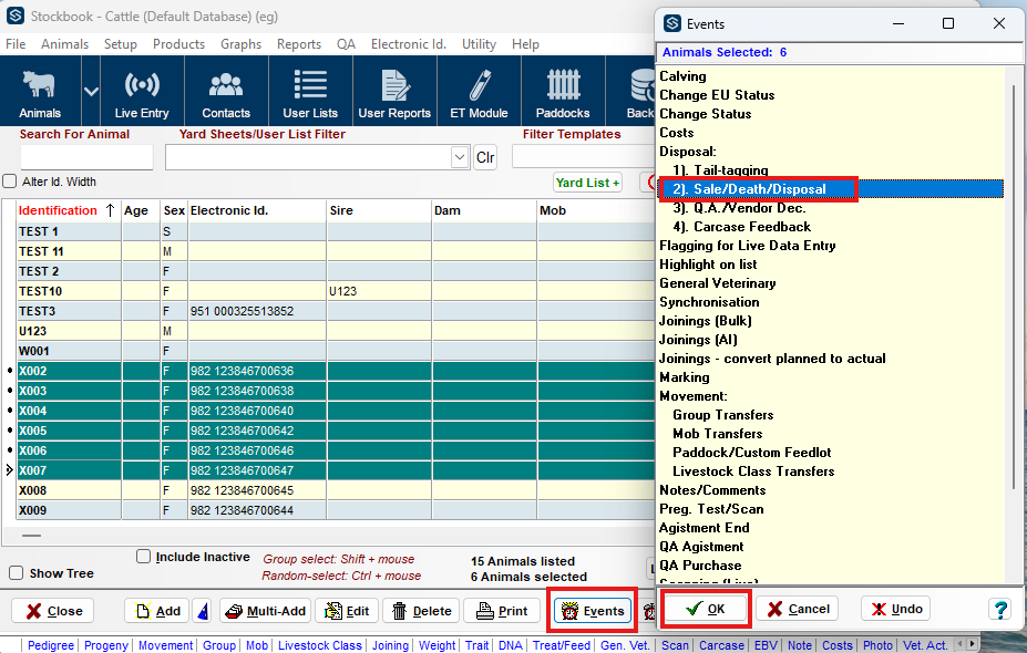 Sale/death/disposal from Live Entry