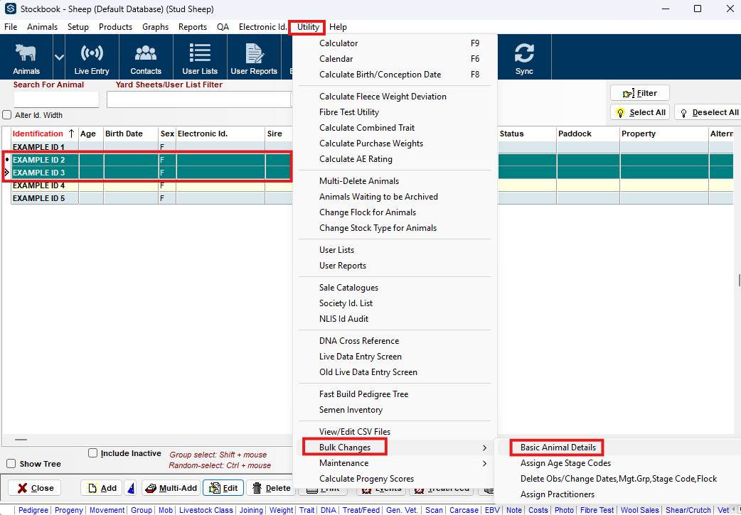 - Go to Utility > Bulk Changes > Basic Animal Details